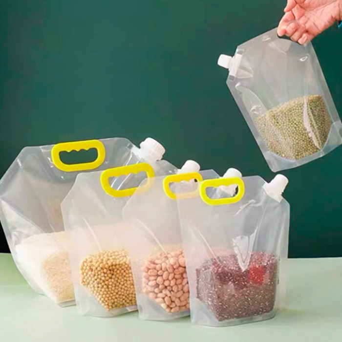 Komplekti kuulub 3 erineva suurusega (1,5l, 2,5l ja 5l) toidukotti! Vedeliku- ja toidu säilitamise kotid on korduvkasutatavad ning teie toit jääb niiskuse ja koide eest kaitstuks!