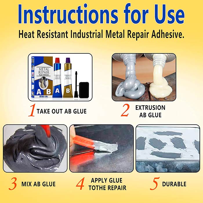 Pakendis on 2 toru A ja B, millega valmistate 1:1 segu ja see on valmis külmkeevitamiseks. Liim kinnitub pindadele, mis on õli või mustuse vabad. See kõveneb 6 minutiga ja saavutab täisjõu 4-6 tunni jooksul!