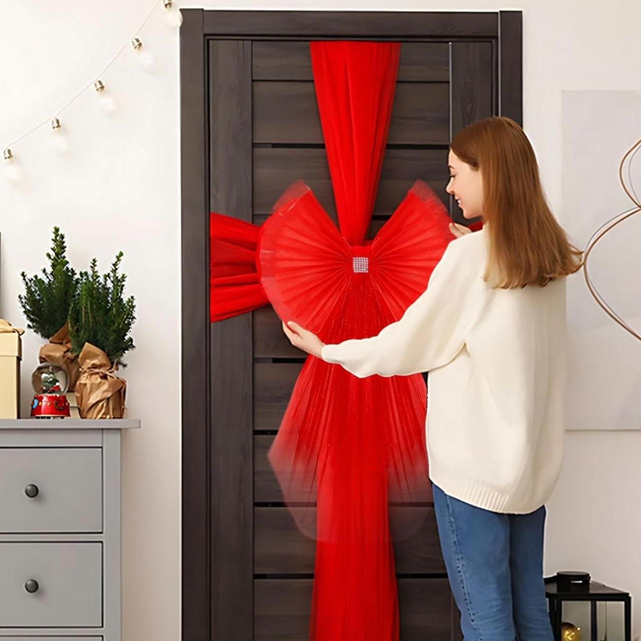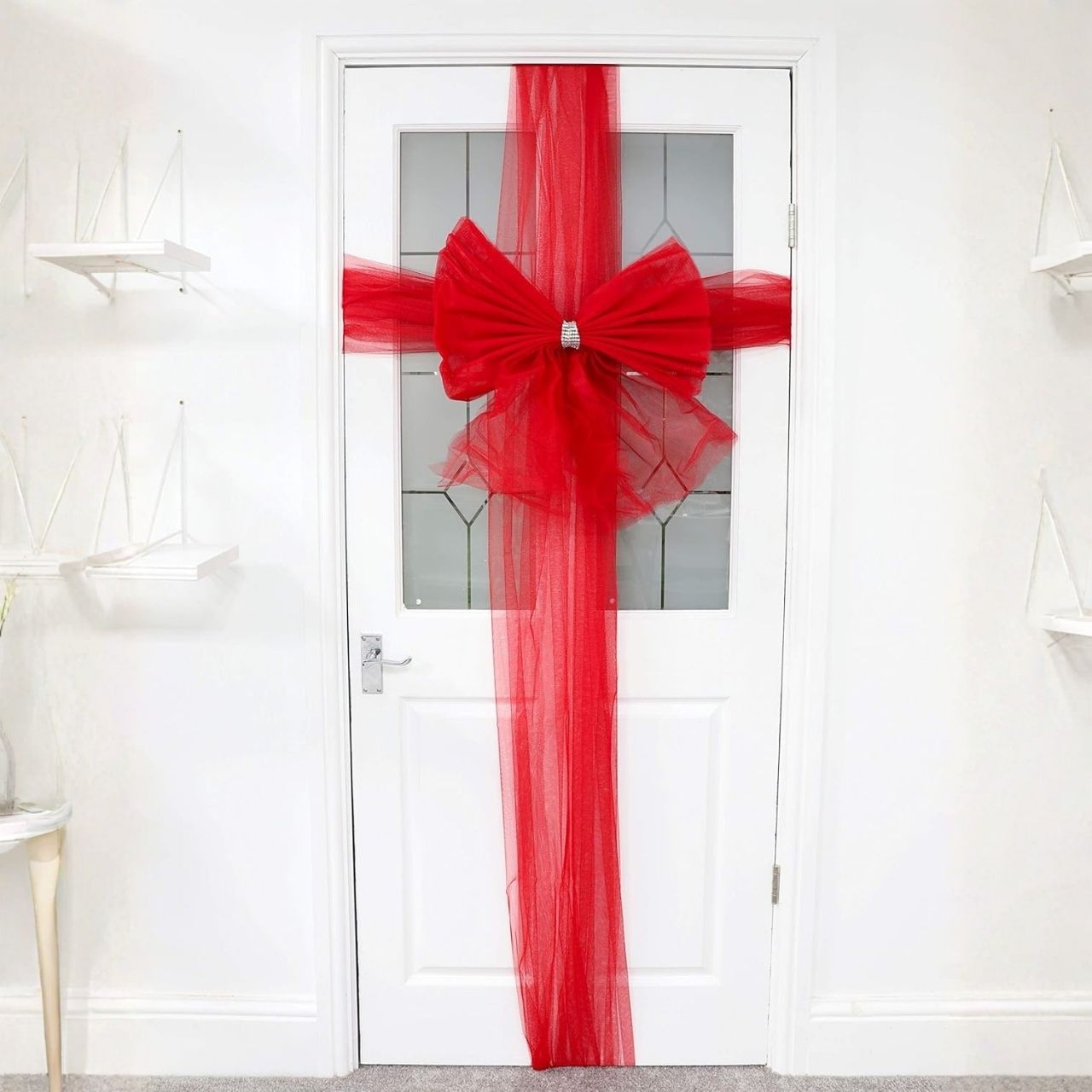 RedBow paigaldamine on äärmiselt lihtne - kaasasolevate klambrite abil saate selle uksele kinnitada vaid mõne hetkega. Pikk lint võimaldab teil paela oma maitse järgi kohandada ja luua täiusliku kaunistuse, olenemata ukse suurusest.