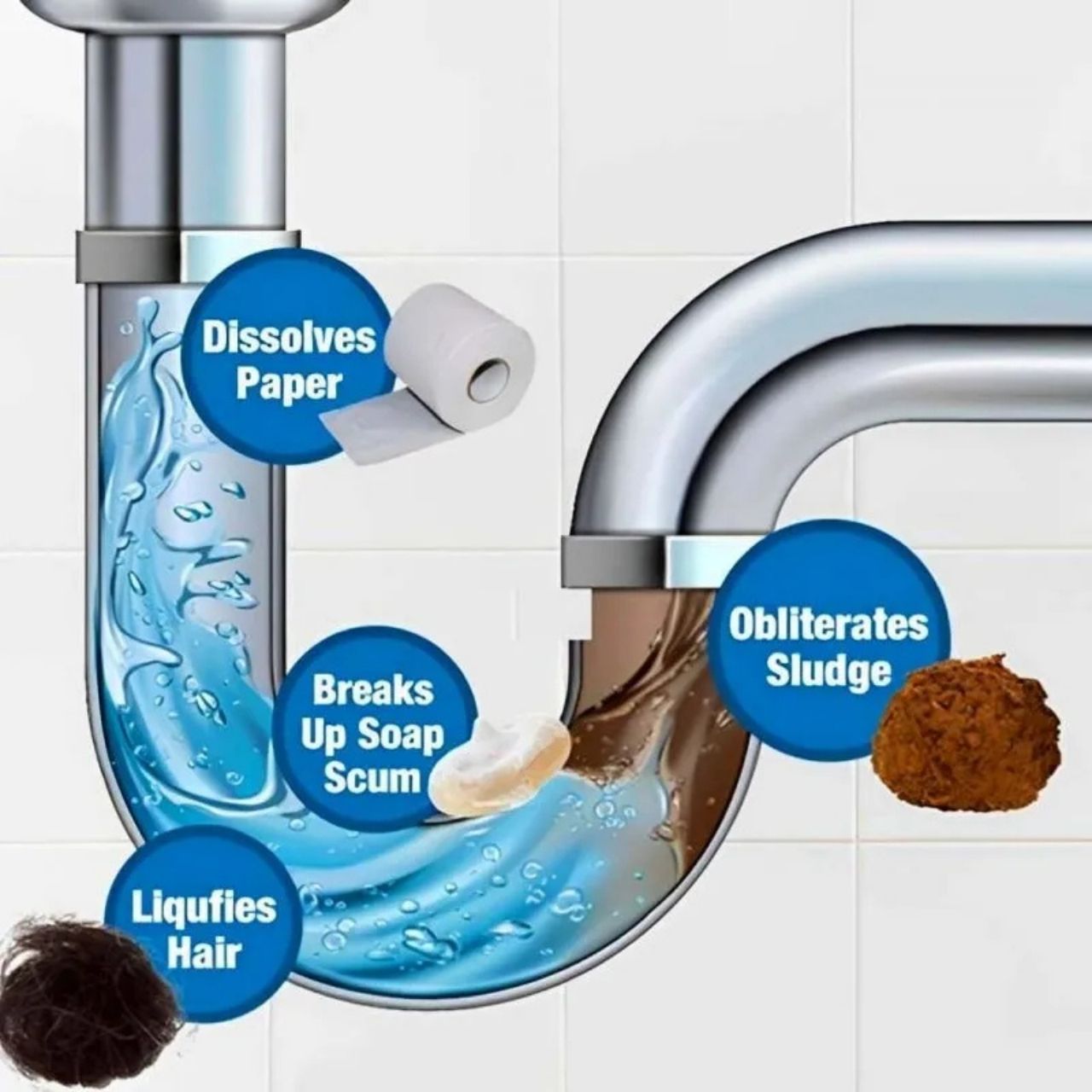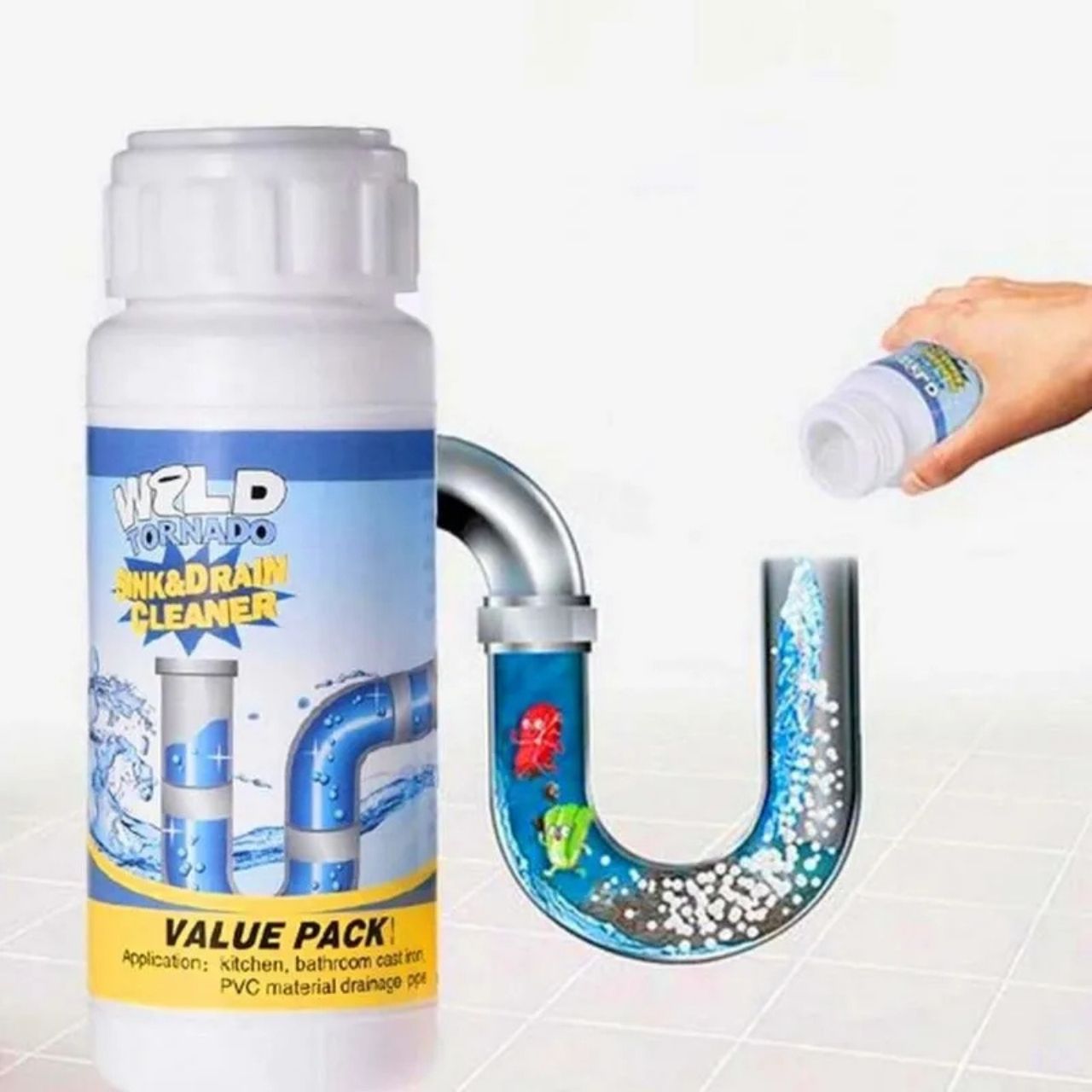 Kalla 50 g toodet kanalisatsiooni ja loputa sooja veega. Oota 30 minutit kuni 1 tund. Seejärel loputa rohke veega.