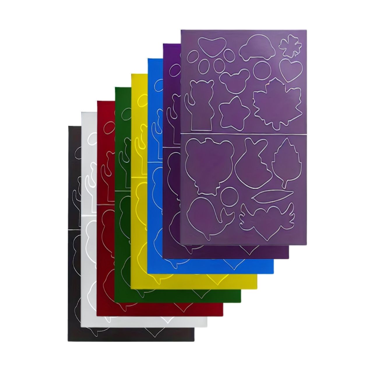 Must, valge, punane, tumeroheline, sinine, kollane, lilla ja helelilla