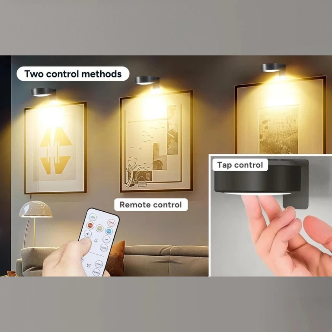 Maalide, kunstiteoste, plakatite ja dekoratiivsete elementide valgustamiseks kodus, kontoris või galeriis. Laadige lampi USB-kaabli kaudu. Seda saab kasutada kaasasoleva puldiga. Kleepige hoidik pildi kohale isekleepuva kleebise abil. Kinnitage lamp hoidikule magneti abil.