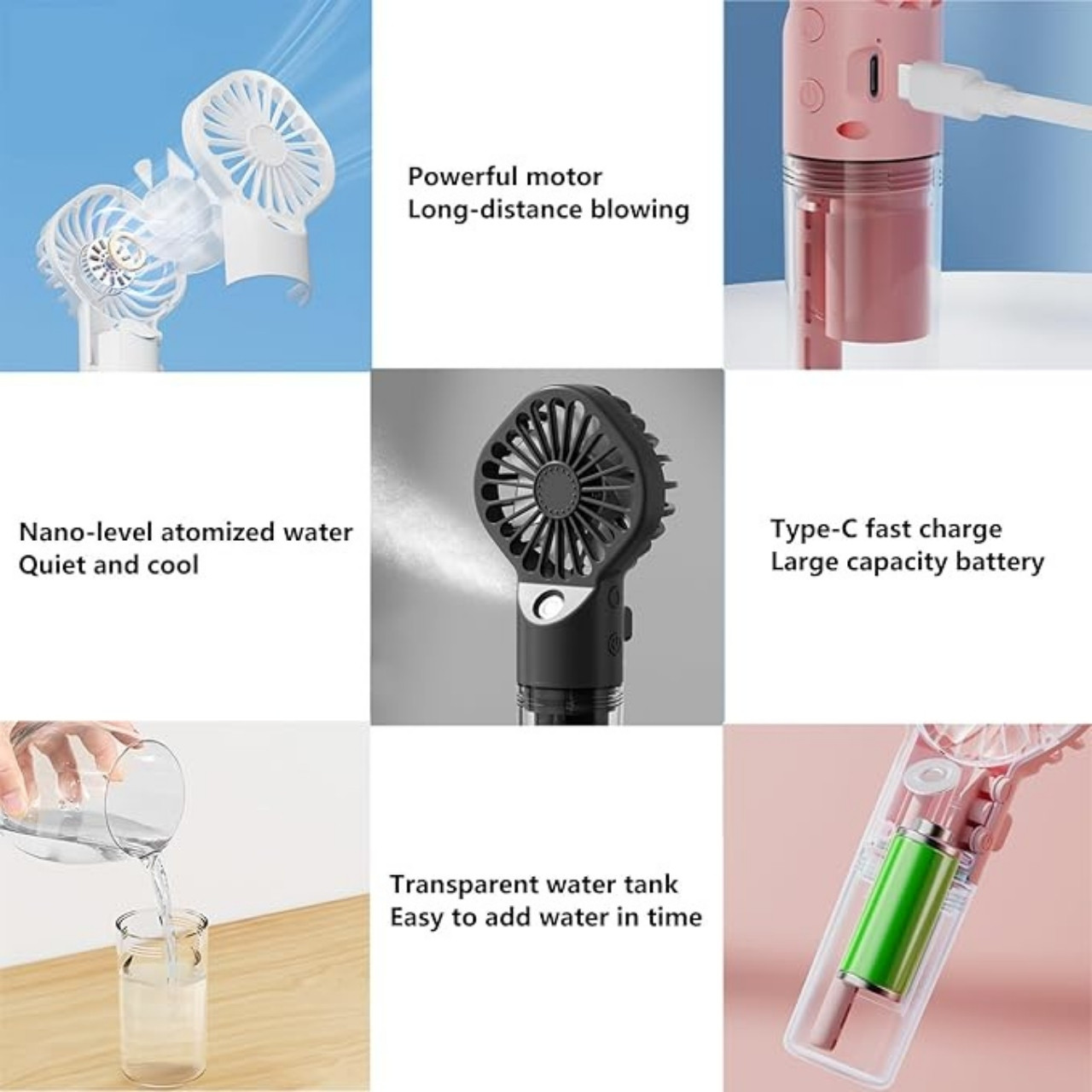 Värskenda ja niisuta ühes - pihustades peent veeudu, jahutab ventilaator mitte ainult, vaid ka niisutab nahka, ideaalne kuumade ja kuivade päevade jaoks.