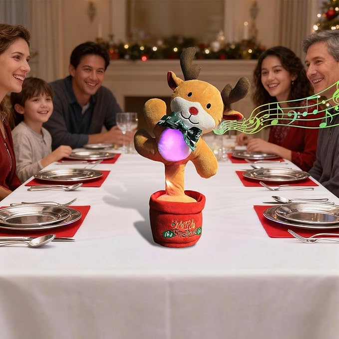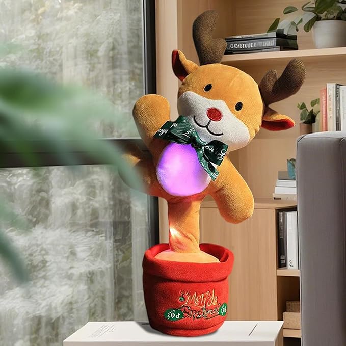 Häälvastus, sõnade kordamine, muusika ja tants, valgusefektid, töötab 3x AA patareidega (ei ole kaasas), suurus 35 cm