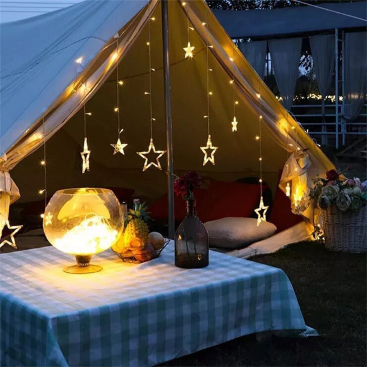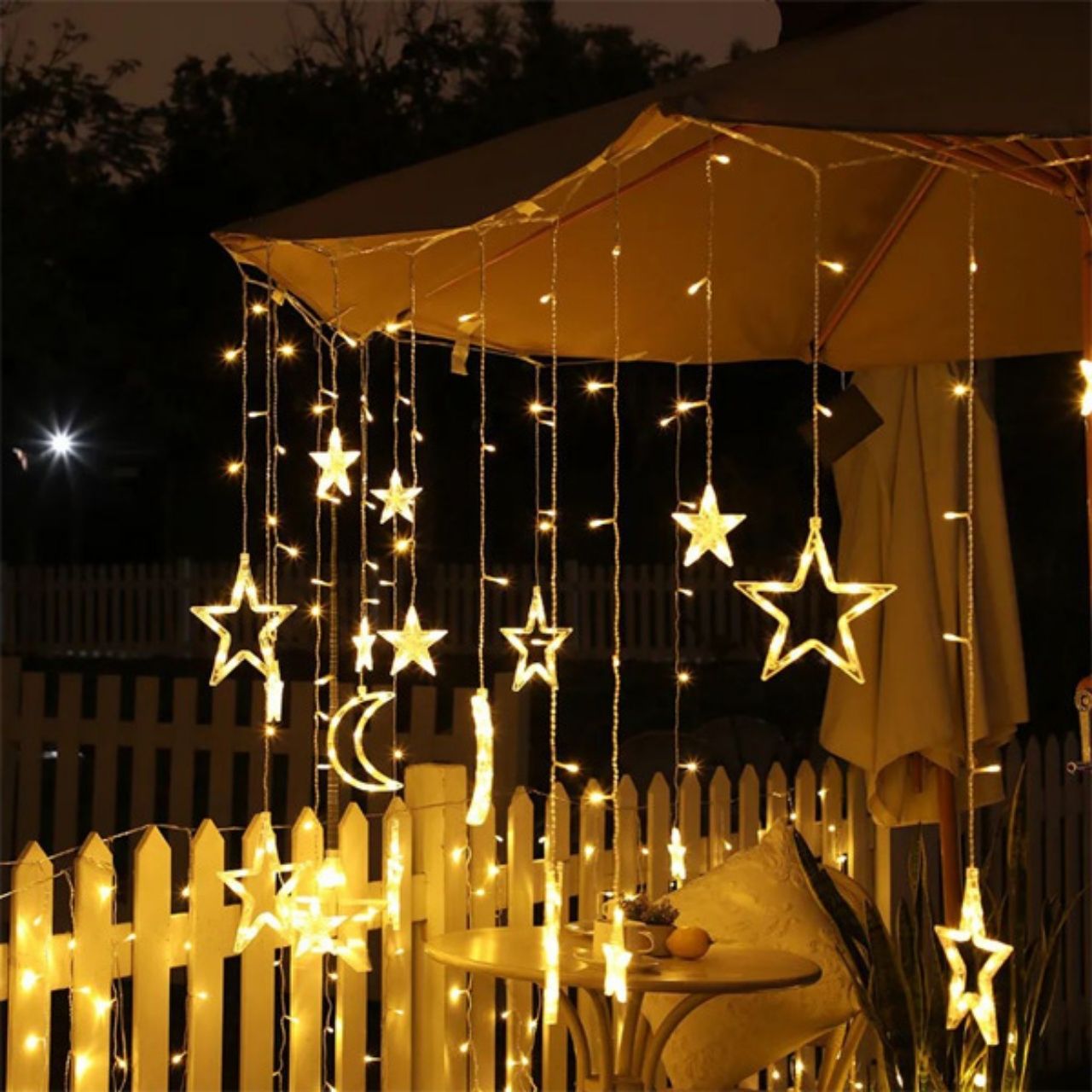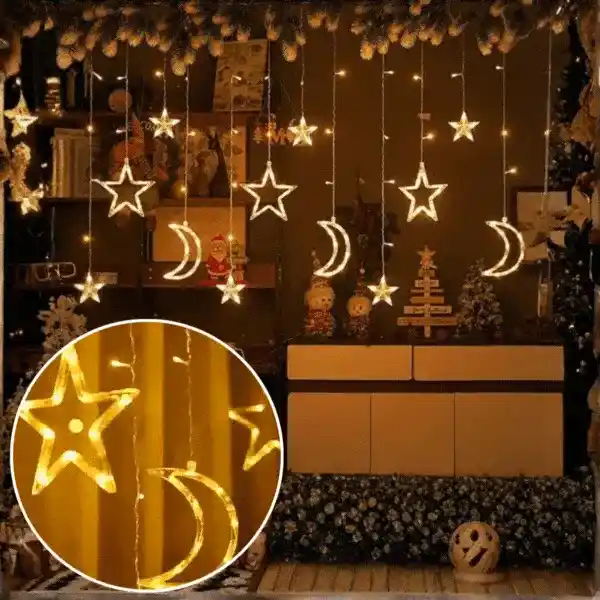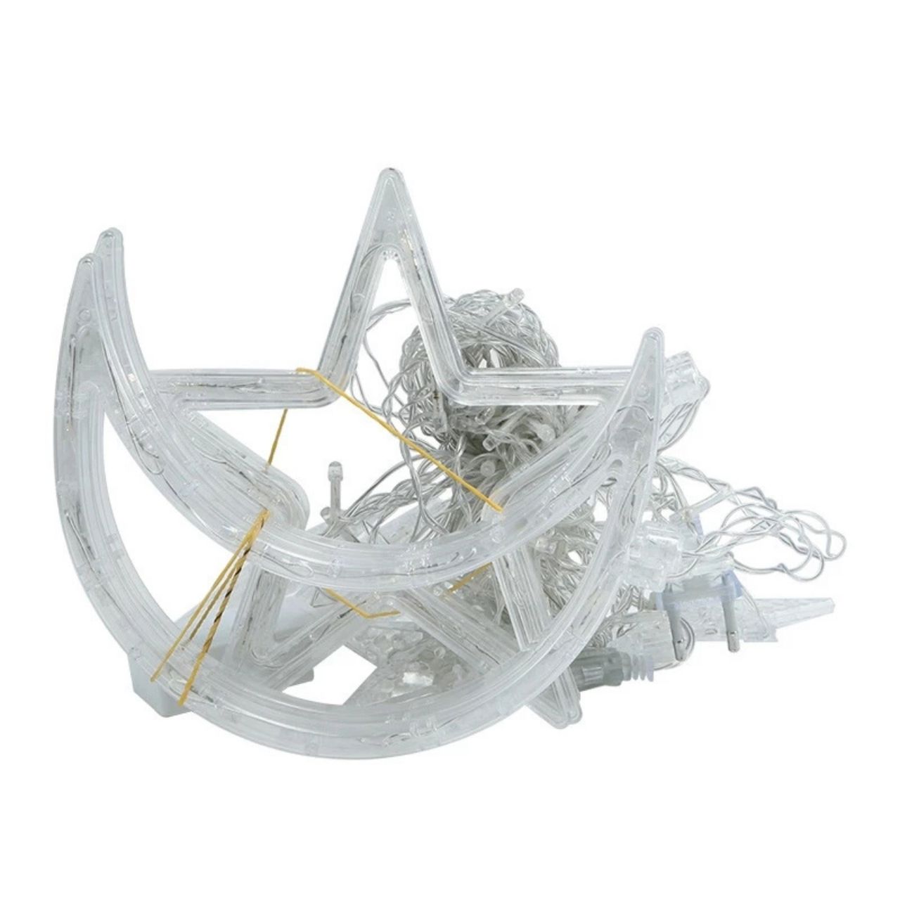 1x komplekt dekoratiivseid tulesid tähtede ja kuu motiiviga koos pistikühendusega (12 dekoratiivset tähte ja kuud)